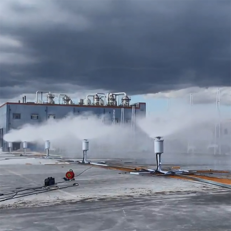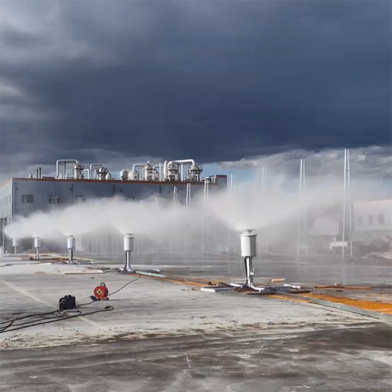 上述、二种手段,投资和能耗都比较高,对于第三种手段:在不增加现有蒸发塘建设面积的前提下,要增加液体蒸发的表面积,只能采取机械装置将被蒸发浓盐水向空间转移的方法提高其有效表面积。使用机械雾化蒸发器,通过喷雾蒸发技术来扩大浓盐水蒸发有效面积,是实现第三种手段的理想选择。